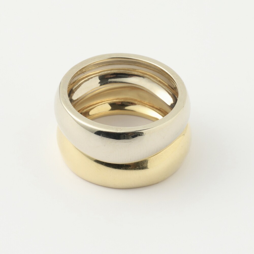 하나의 조각품을 바라 보는듯, 남녀가 서로 사랑하는 모습을 형상화한 웨이브링인 러브미 링은 완벽하게 맞아 떨어지는 곡선라인이 특징이며, 볼륨감있게 제작된 중량 높은 골드의 컬러가 트리니티인 까르띠에 시그니처 컬러로 제작된 빈티지에서만 발견할 수 있는 레어템입니다. 특히 이번제품은 라지 사이즈 모델로 매우 볼드한 두개의 링이 각각 만나 더욱 볼드하면서도 부드러운 곡선을 완성하기에, 나눠서 착용해도 손색이 없는 활용도가 매우 좋으면서도 특별한 의미가 담겨진 클래식한 커플링이기도 합니다.