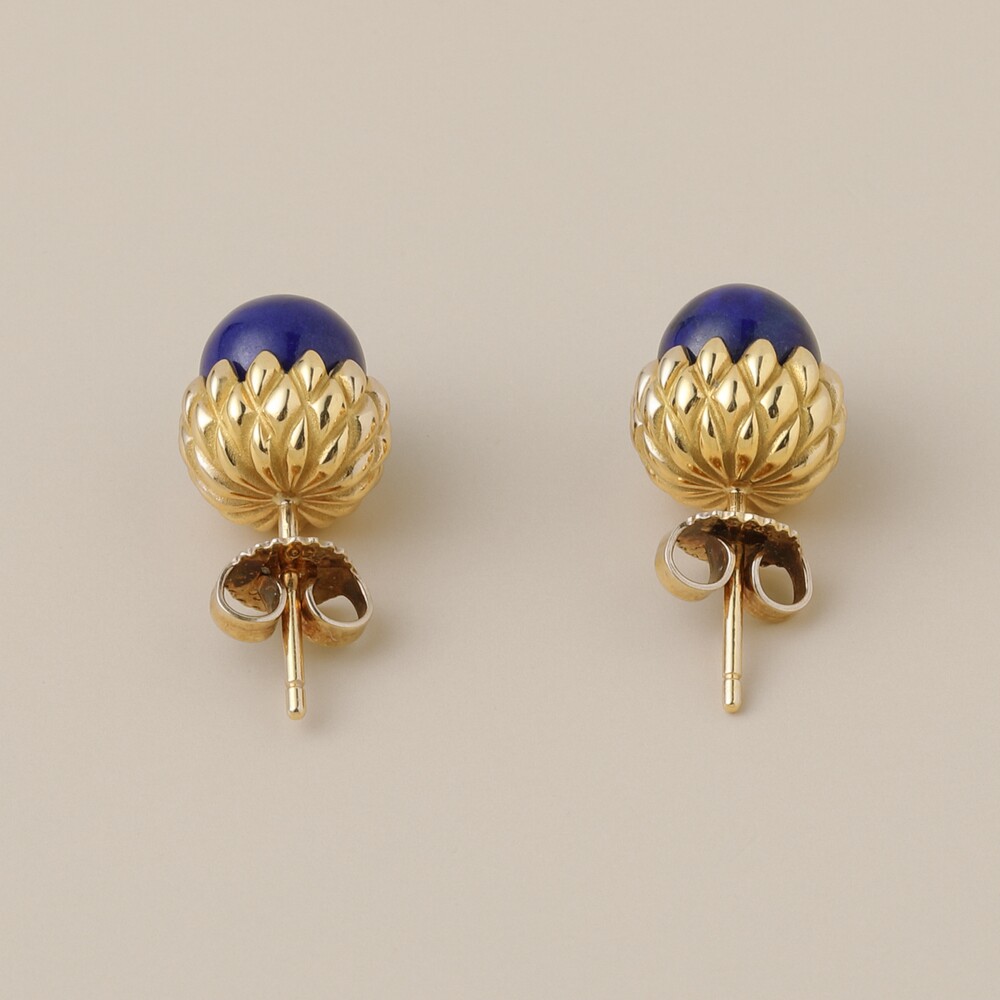 “나는 모든 주얼리를 움직이는듯하고, 동일한 것이 없이, 자연 그대로의 무작위함이 보이도록 제작한다“ 라고 하는 쟝 슐럼버제의 작품은 이를 구현해내는 스케치와 공예 기술력울 기반으로 합니다. 도토리 껍질의 풍성함을 화려한 보석으로 재탄생 시키는 독창적인 그의 디자인과 기술력 모두 당대 최고였습니다.특히 이번 제품은 라피스라줄리의 완벽한 컬러를 보여주는 채도 높은 제품으로 황철석이 보이지 않는 솔리드한 짙은 블루가 매우 특별합니다. 이어넛까지 오리지널 그대로 준비되어있는 70년대 슐럼버제의 컬렉션 보존 가치 그대로 소장할 수 있습니다.
