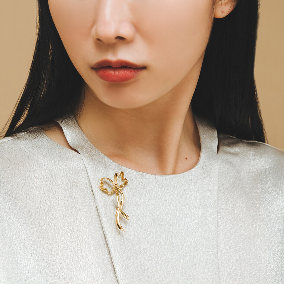 20세기 이전부터 사용되던 보우 디자인은 벨에포크 시대에 프랑스 바로크 로코코시대의 의상에서 영감 받아 레이스와 함께 더욱 다양하게 표현 되었습니다. 특히 2차 세계 대전 때 전쟁으로 인한 플래티늄 사용이 어려워지자 무른 금의 성질을 이용하여 금을 패브릭 처럼 자유자재로 표현 하게 되며, 보우의 전성기를 가져옵니다. 이 제품 또한 우아하게 흔들리는 패션에서의 보우를 완벽하게 표현하며, 비대칭성의 아름다움을 핸드메이드로 더욱 돋보이게 합니다.