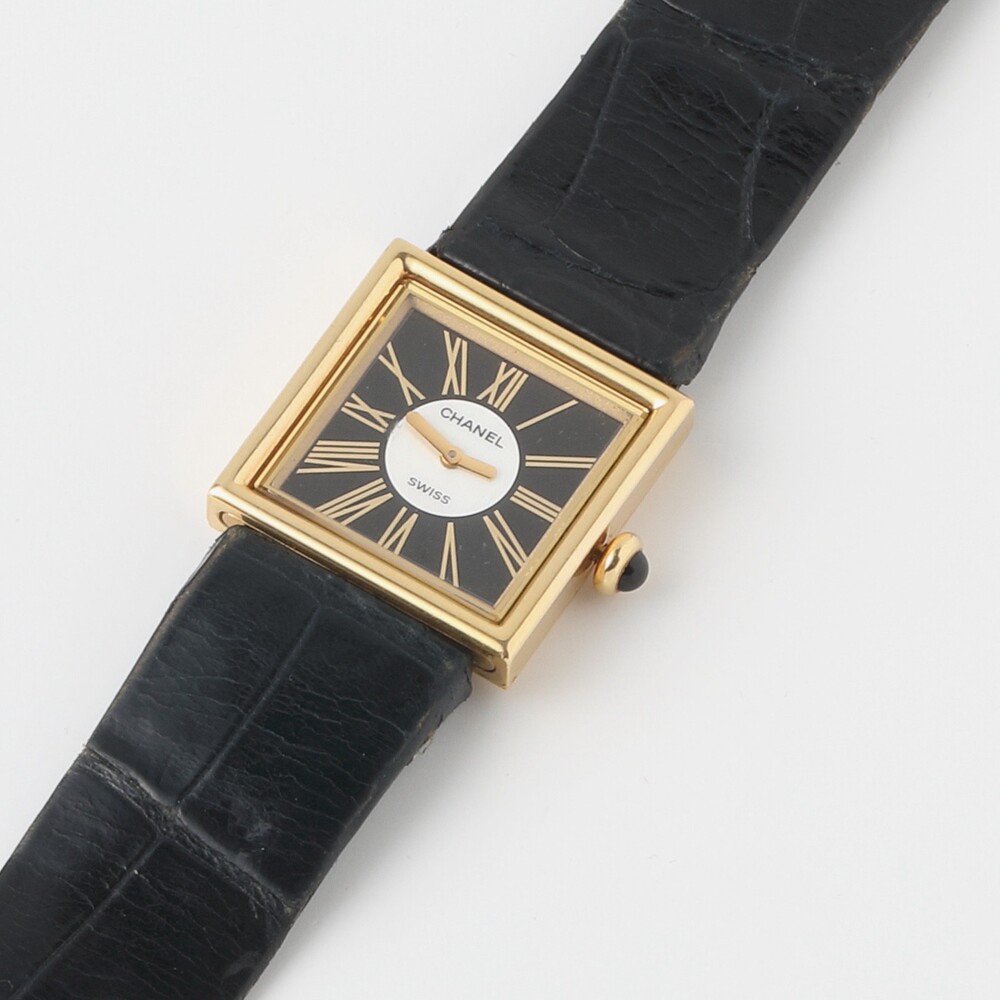 샤넬의 시계 역사는 워치 전문 브랜드만큼 길지 않지만, 1987년 시작한 이래로 늘 베스트셀러에 꼽힐 정도로 시그니처 워치 브랜드 중의 하나로 자리잡았습니다. 이는 역시 강력한 샤넬만의 패션 아이덴티티를 담은 시그니처 디자인 때문인데, 주얼리로서도 역사가 깊은 샤넬 브랜드의 특징상 매우 섬세하고 정교하게 손목 워치의 완성도를 높인다는 것에 더욱 큰 팬덤을 형성합니다. 지금은 만나 볼 수 없는 1990년대 선보였던 샤넬의 두번째 워치 마드모아젤 컬렉션은 특유의 샤넬 마트라세 스퀘어를 정방향으로 샤넬의 아이덴티티가 담긴 인덱스와 함께 매우 미니멀하면서도 화려하게 보여주는 컬렉션입니다. 워치 밴드는 마트라세 또는 블랙 가죽으로 색다른 분위기로 연출 할 수 있으며, 무엇보다 90년대기에 18k 통골드로 제작된 중량감 높은 고급스러운 다이얼과 베젤, 클래스프가 지금은 구현할 수 없는 올드머니 럭셔리의 방점을 찍는 매우 합리적인 가격의 제품입니다.