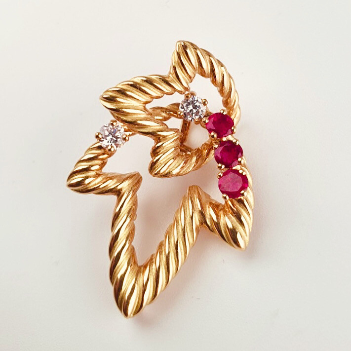 빈티지 쇼메 루비 리프 펜던트 ( 브로치 )