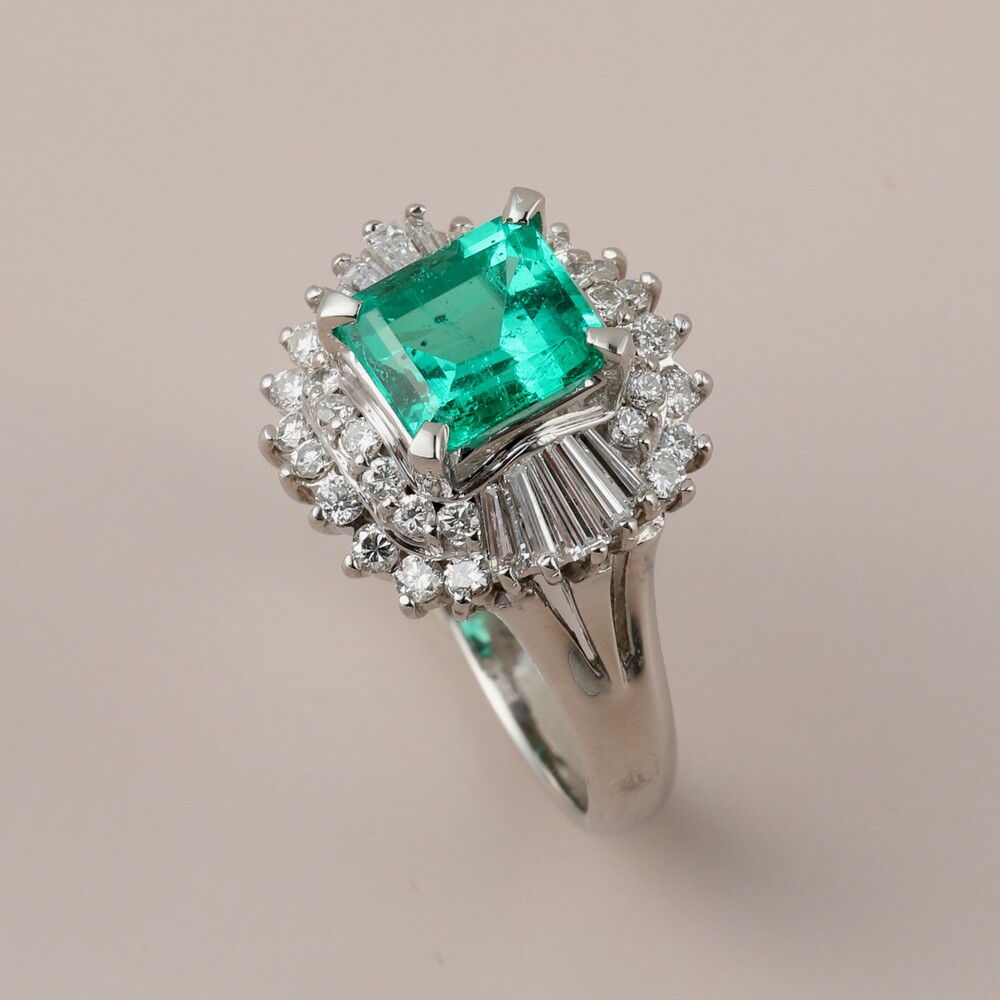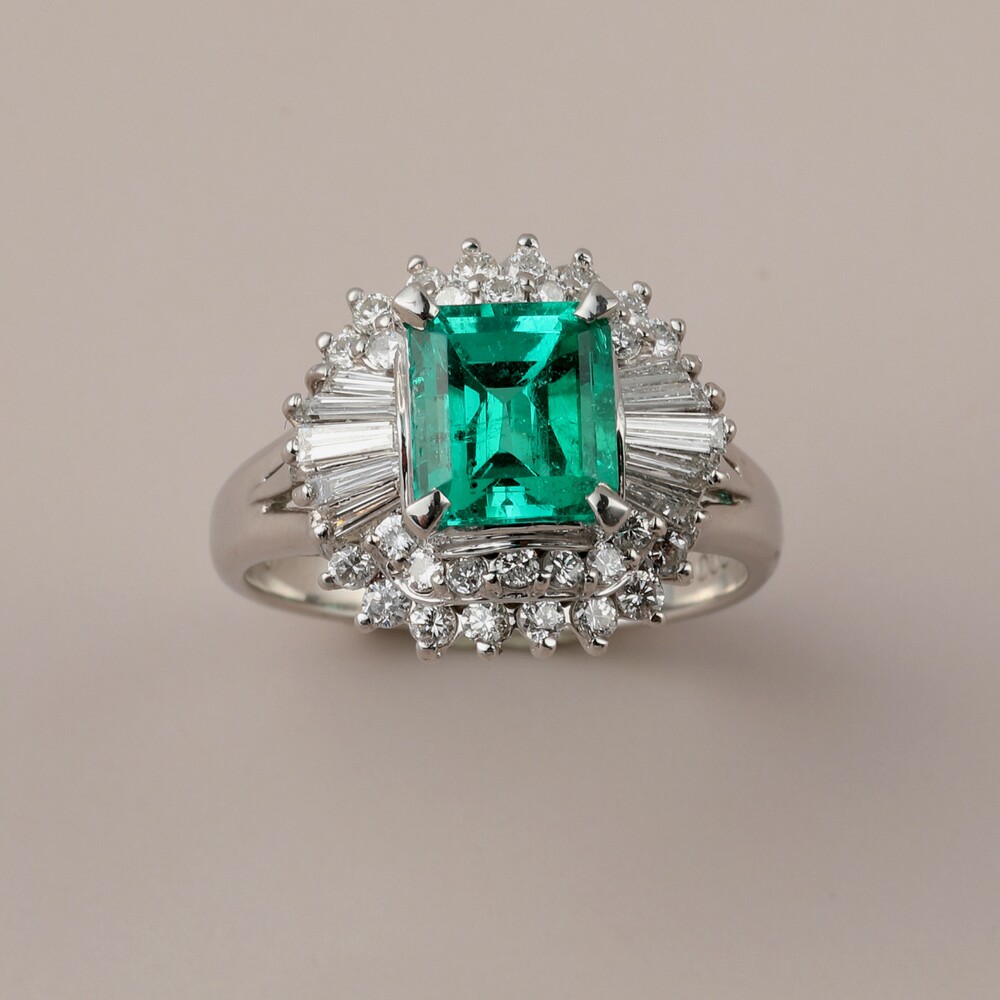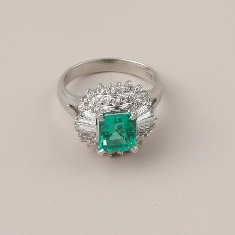 빈티지 에메랄드 잠비안 2 캐럿 플래티늄 링