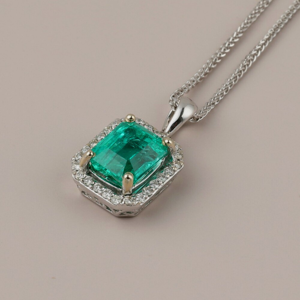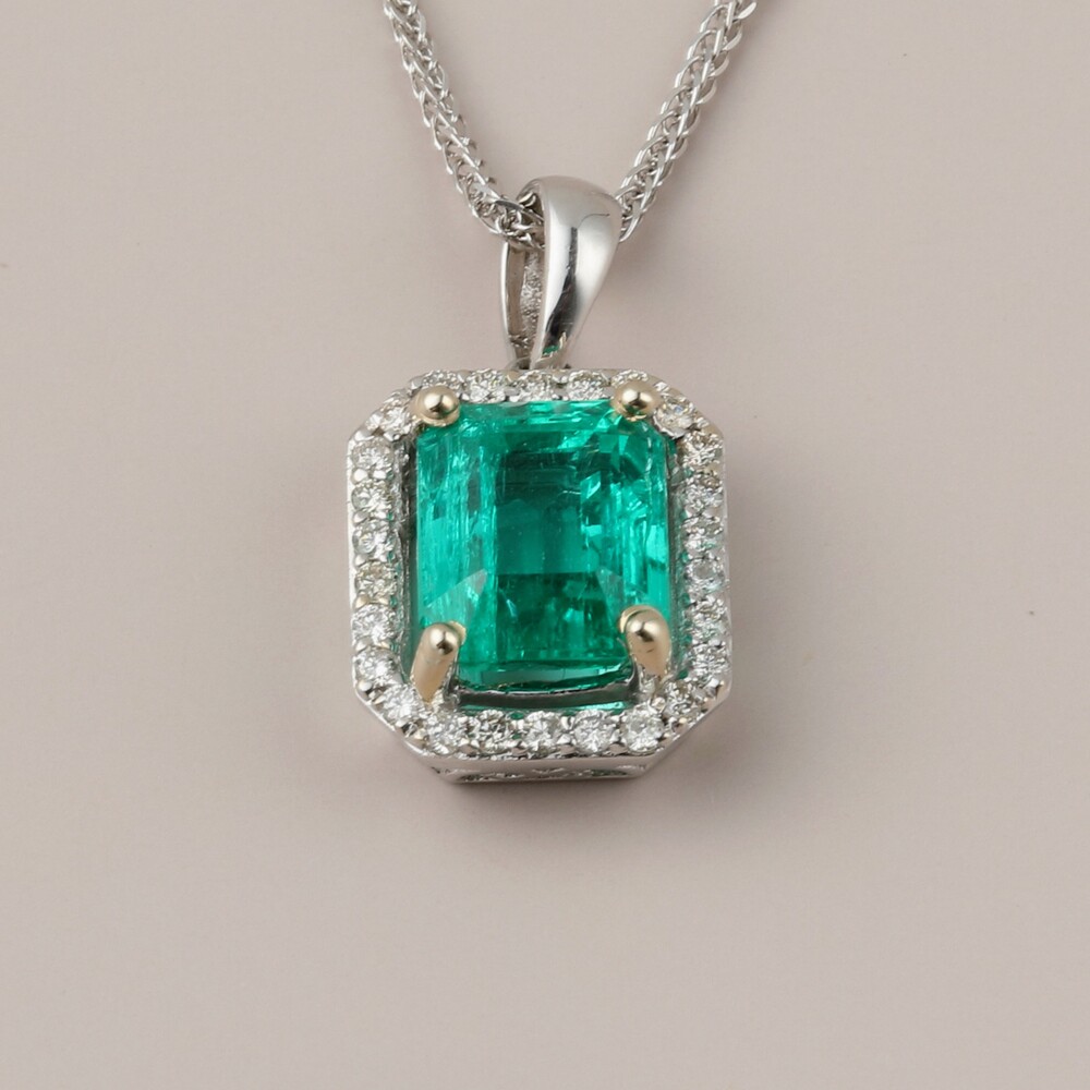 빈티지 에메랄드 콜롬비안 2.5 캐럿 플래티늄 펜던트