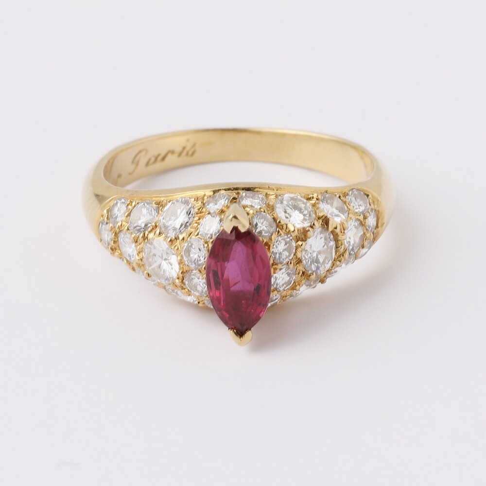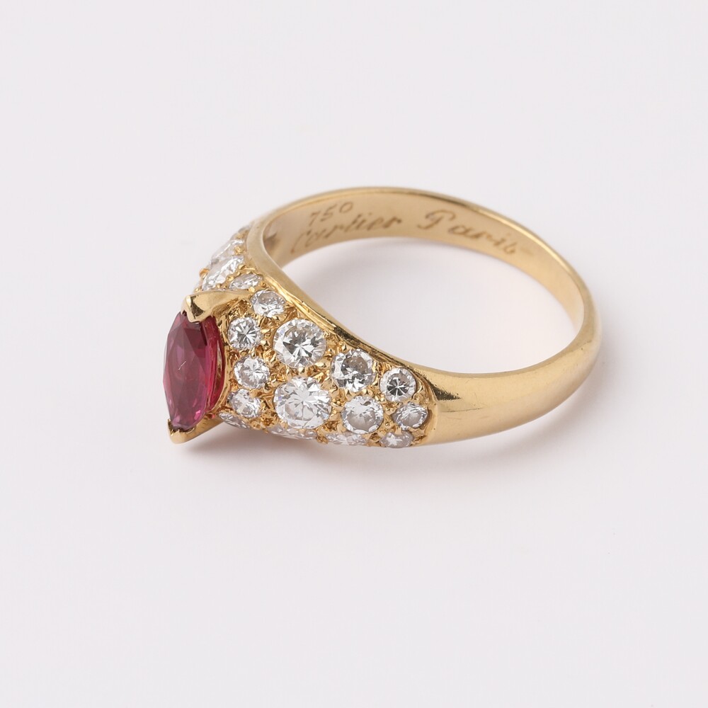 빈티지 까르띠에 마르키즈컷 루비 링