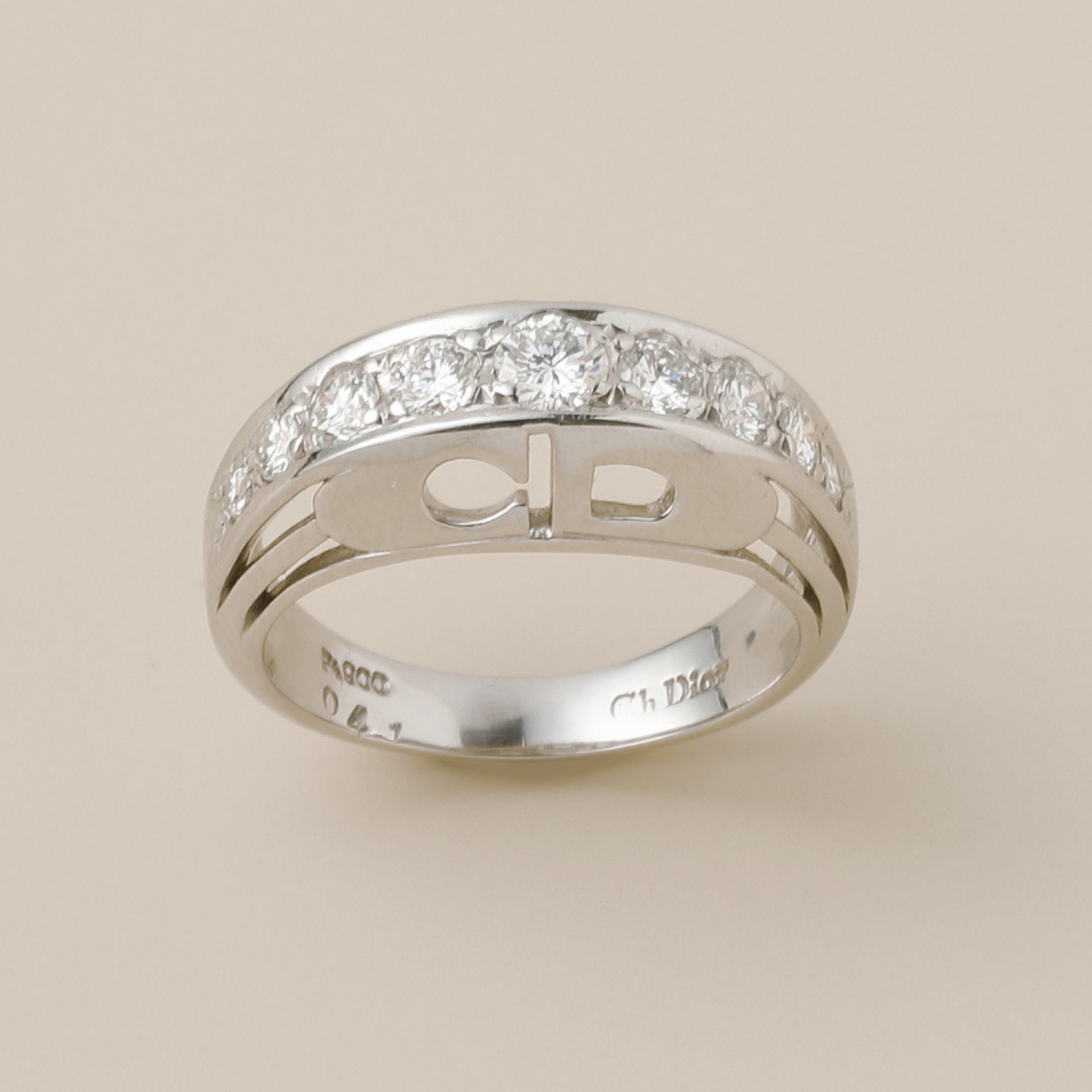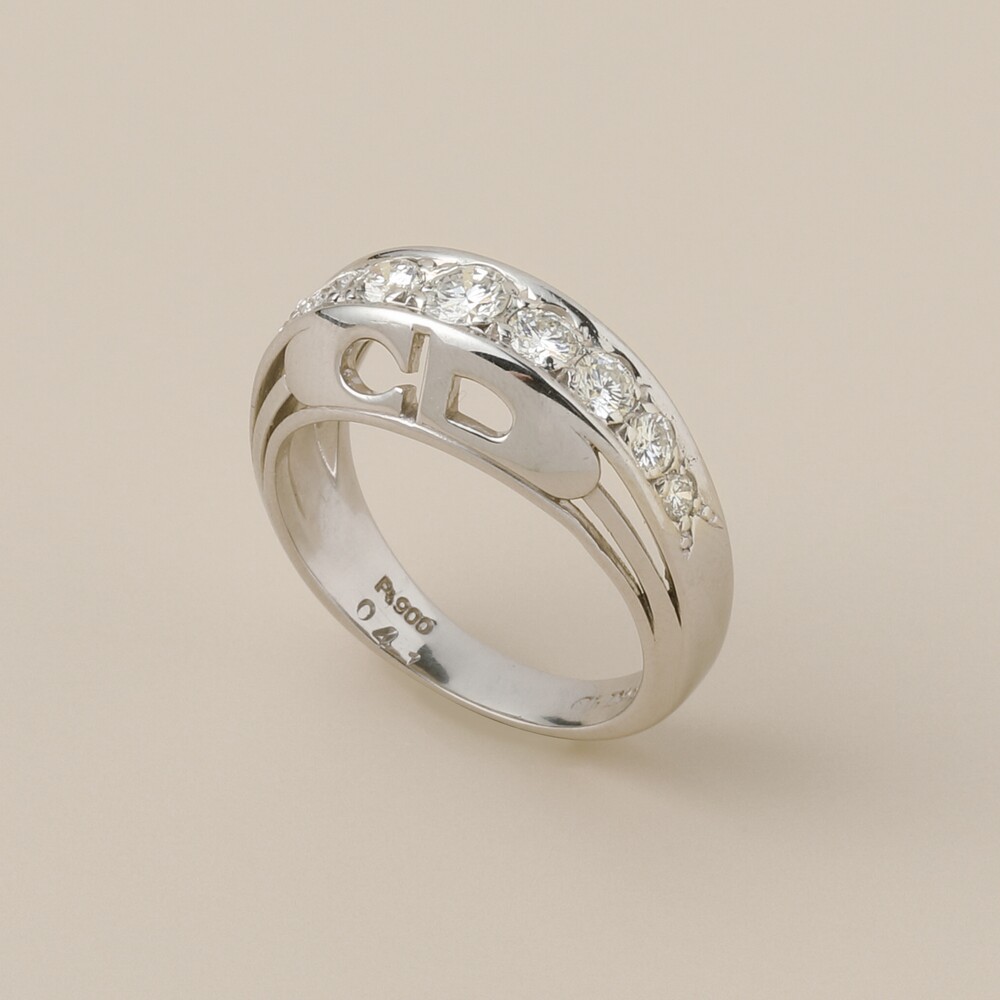오뛰꾸뛰르 하우스로서의 디올이 가장 전성기를 누리던 50년대에서 70년대, 뉴룩의 명성을 이어가는 디올은 패션에 어울리는 주얼리도 같이 선보였습니다. 당대 최고의 디자이너들과 협업하여 디올의 아이덴티티를 담은 최고의 디자인과 섬세한 기술력을 표현한 디올의 빈티지 주얼리는 지금도 하루가 다르게 옥션가를 갱신할 정도로 콜렉터들의 사랑을 받고 있는 매우 레어한 제품입니다. 이번 제품은 랩다이아몬드의 논란을 단번에 종식시킬, 다이아몬드 본연의 오색 광채가 최상의 휘광성으로 다채롭게 느껴지는 볼드한 링입니다. 플래티늄으로 오픈 워크의 각인을 돔처리한 이 제품은 볼드하면서도 우아한 디올만의 분위기를 잘 담아내었습니다.