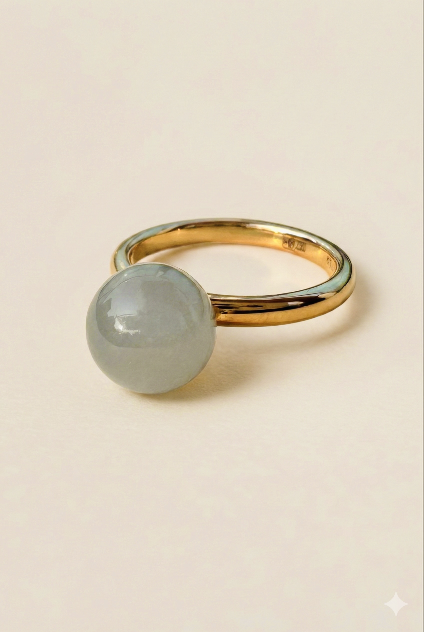 자연이 만들어낸 불순물인 미세한 층들은 빛을 직진시키지 않고,층과 층의 경계에서 반사·간섭·회절시키면서 빛을 돌 표면 바로 아래에서 미끄러지듯 떠다니게 만듭니다. 문스톤의 매력인 어슴푸레한 빛 ( gleam ) 입니다. 관찰자에 따라 슬며시 그 시선의 아래로 떠오르는 빛이 보여지는 것이니 문스톤이야말로 보이지 않는 구조가 빛을 연출하는 미학을 만들어낸 내포물의 미학인 것이죠.이 시기의 티파니의 하드웨어볼은 불투명한 빛을 가진 하드스톤들을 특유의 볼륨감있는 구의 형태로 본질에 충실하게 탄생했어요. 다양한 사이즈로로 즐길 수 있는 하드웨어볼링은 본질 그대로를 담은 하드스톤들의 매력을 발산하는 최적의 디자인입니다.