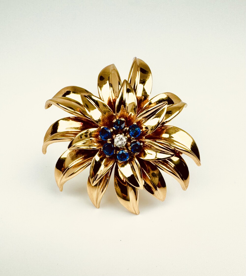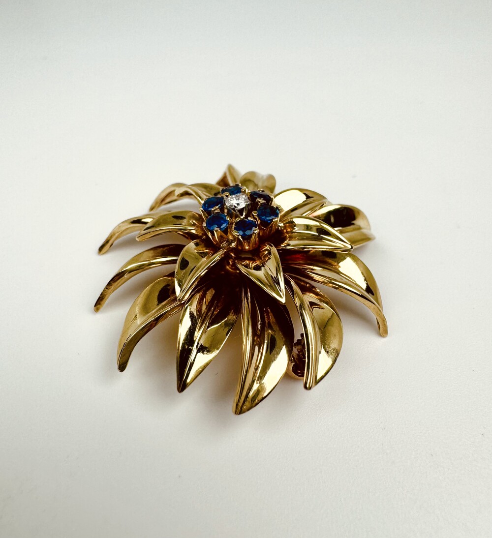 빈티지 티파니 18k 사파이어 플라워 브로치